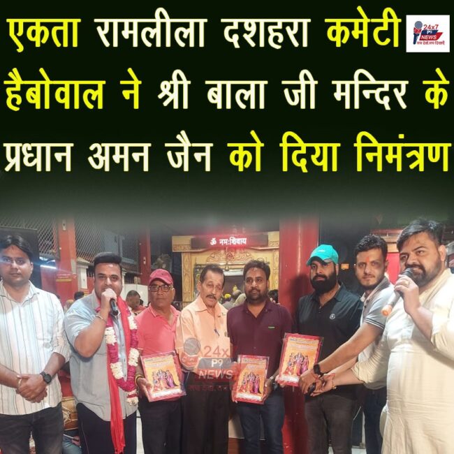 एकता रामलीला दशहरा कमेटी हैबोवाल ने श्री बाला जी मन्दिर के प्रधान अमन जैन को दिया निमंत्रण : प्रधान बाल किशन वर्मा