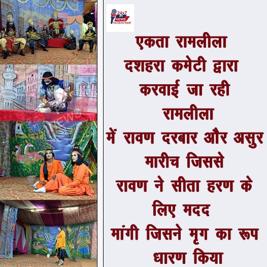 एकता रामलीला दशहरा कमेटी की तरफ से करवाई जा रही रामलीला में सरूनखा का नाक कटना, खरदूषण वद, रावण दरबार, सीता हरण की देखे कुछ अलौकिक झलकियां : चौबीस को