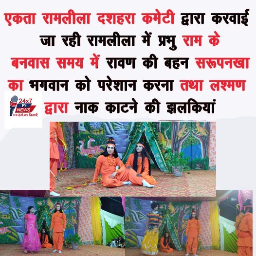 एकता रामलीला दशहरा कमेटी की तरफ से करवाई जा रही रामलीला में सरूनखा का नाक कटना, खरदूषण वद, रावण दरबार, सीता हरण की देखे कुछ अलौकिक झलकियां : चौबीस को 50 फुट का रावण होगा दहन : प्रधान बी के वर्मा