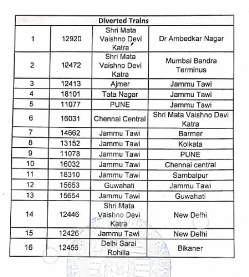 रद्द ट्रेनों और रूट डायवर्ट की लिस्ट…