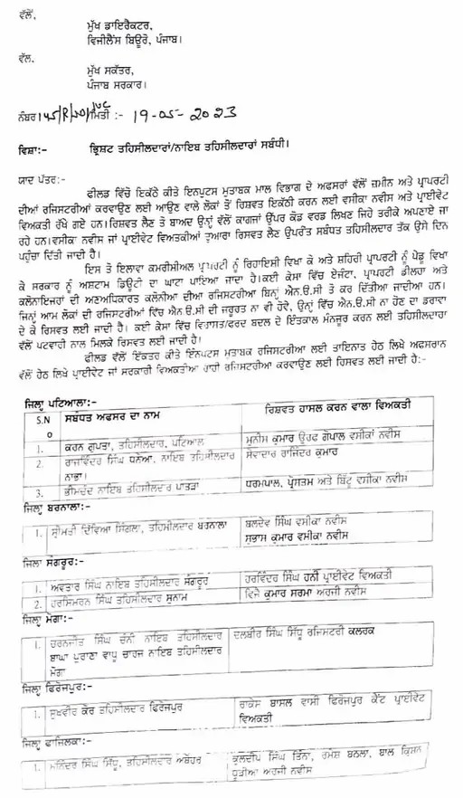 पंजाब विजिलेंस का तहसीलदारों पर शिकंजा : भ्रष्ट अधिकारियों की लिस्ट बनाकर सरकार को भेजी, एजेंटों के माध्यम से चल रही रिश्वतखोरी